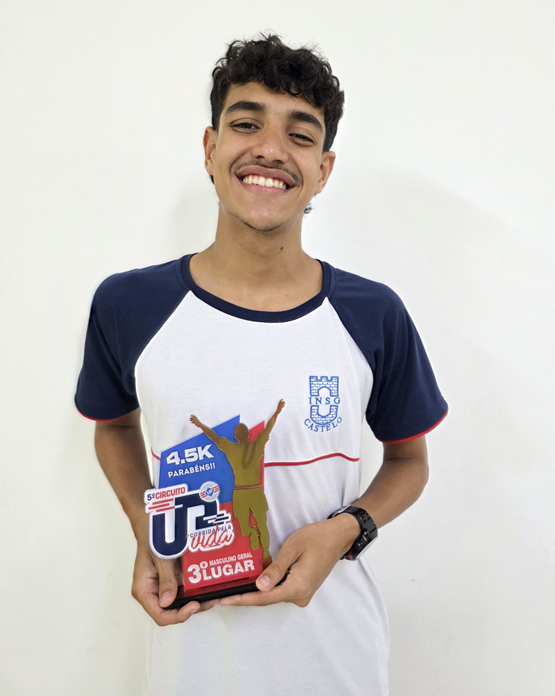 João Ferreira Nazareth, estudante da 1ª série do Ensino Médio do Instituto Nossa Senhora da Glória – INSG/Castelo, em Macaé (RJ) conquistou o 3º lugar após disputar uma prova de corrida de 4,5 km, realizada no último fim de semana.